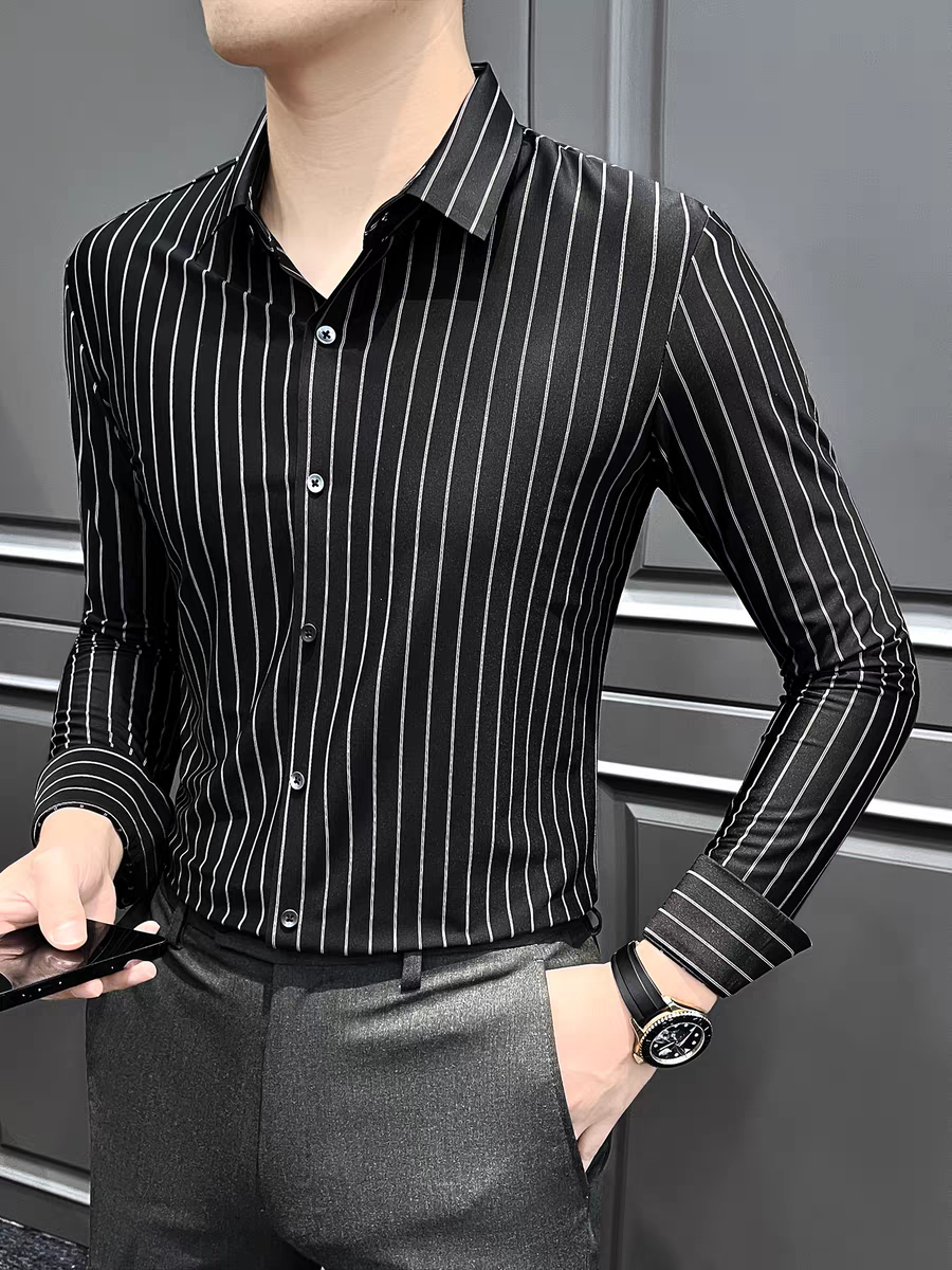 Elevate your wardrobe with the Shadow Linear Formal Shirt, where midnight sophistication meets sharp geometric design.